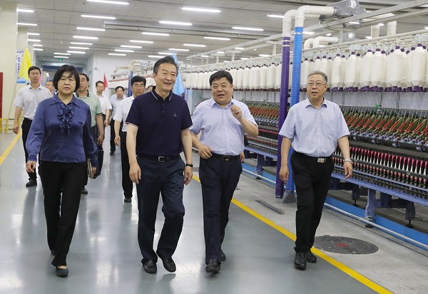 5月25日,河北省人大常委会副主任王刚到“双创双服”分包重点企业石家庄常山纺织集团调研。